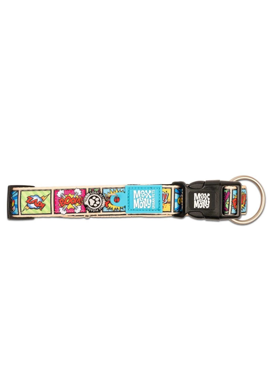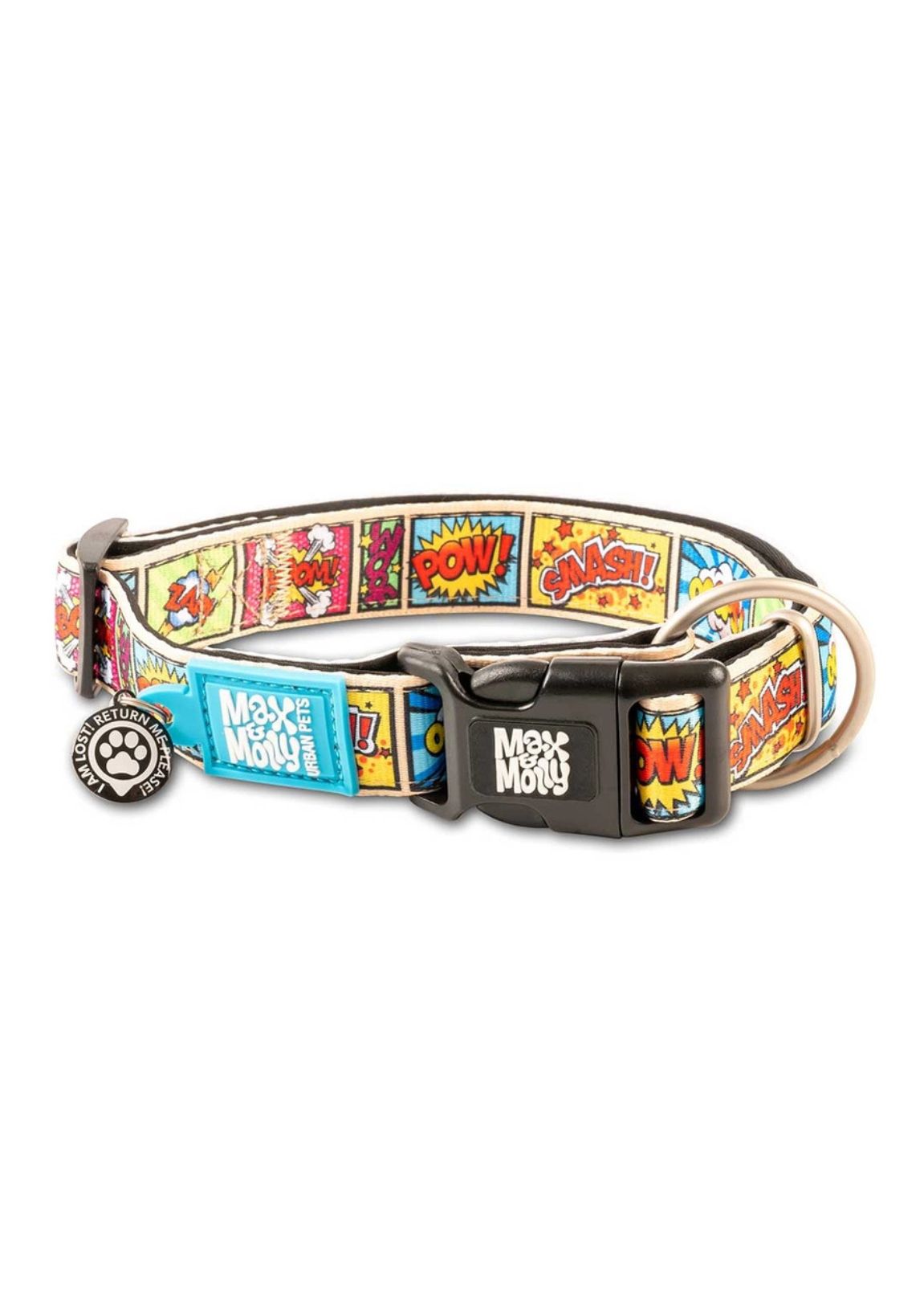Transforma cada passeio em um desfile de estilo com a coleira Max & Molly com estampagem em quadrinhos! O teu cão é único - destaca-o com este design divertido e exclusivo.