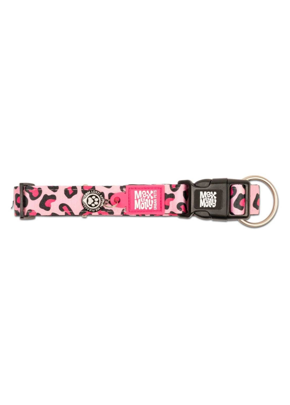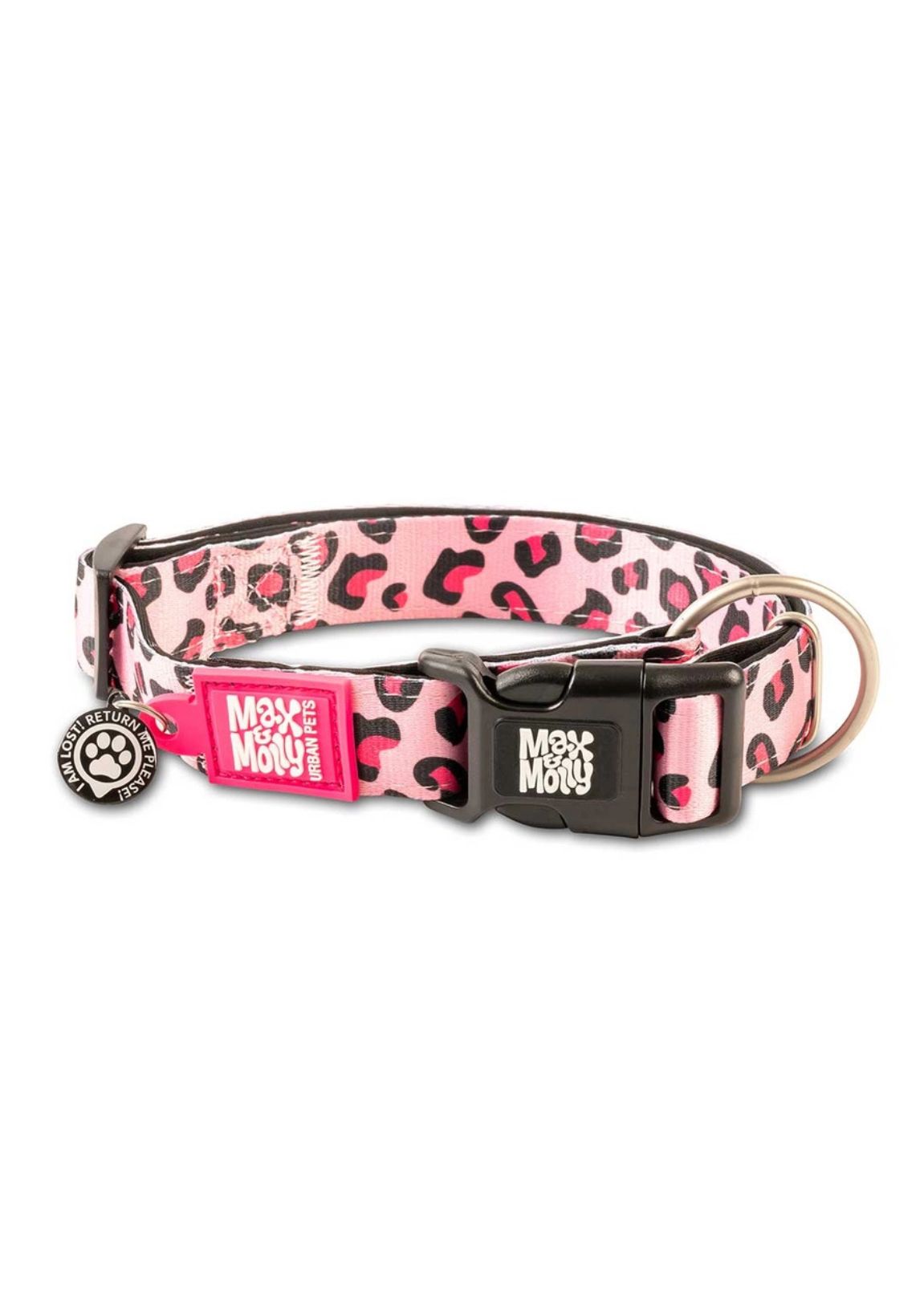 Destaca a personalidade do teu cão com a coleira da Max & Molly com estampagem leopardo rosa! Design exclusivo para cães com muita atitude, irá atrair olhares por onde passar, sem abrir mão do conforto.