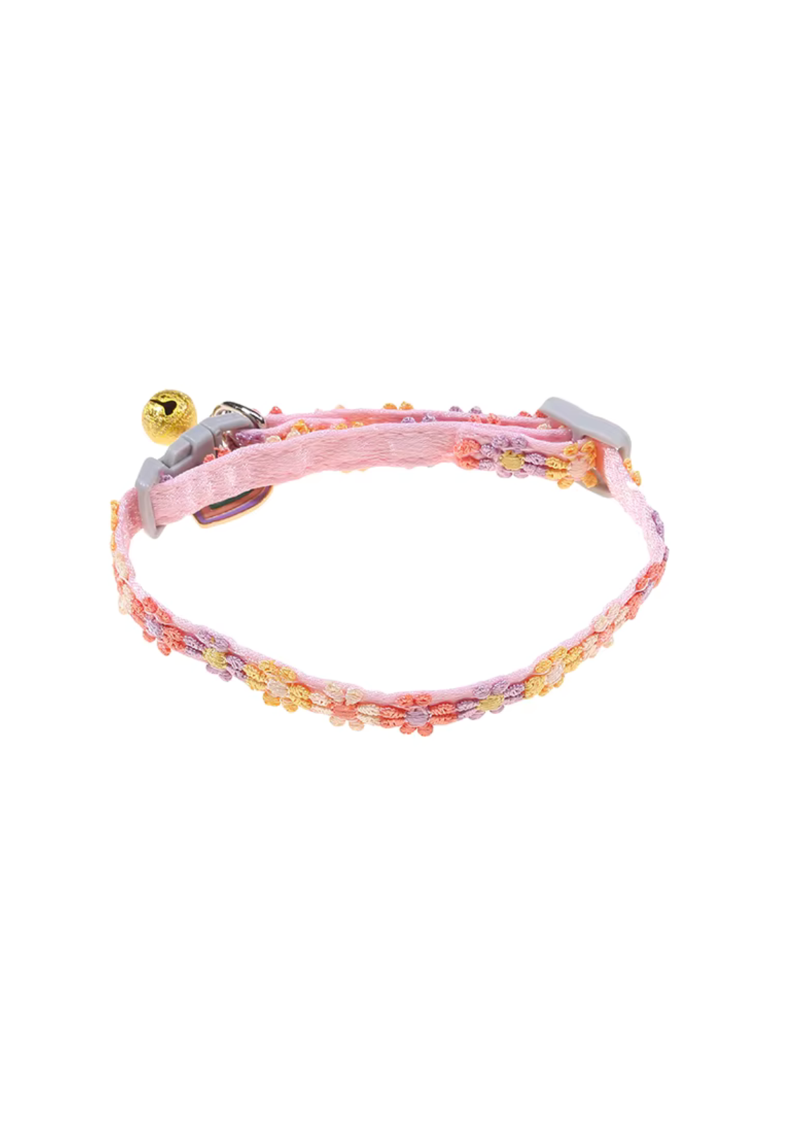 Um toque de doçura e encanto para o teu gato! Esta coleira é perfeita para quem quer adicionar um detalhe elegante ao look do seu companheiro. Confortável e ajustável, transforma cada passeio numa verdadeira passarela de fofura.