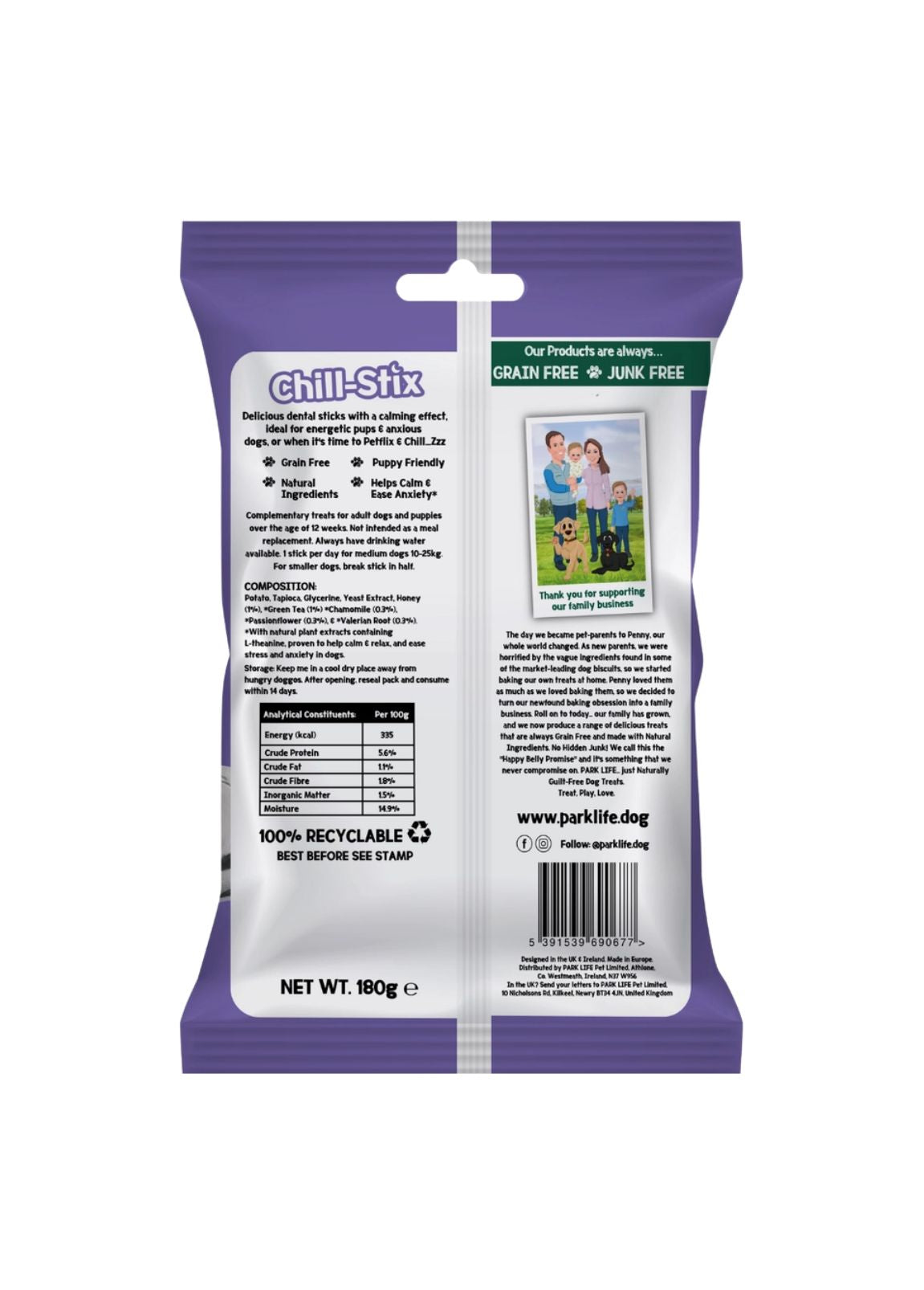 Estes sticks dentários deliciosos com ingredientes calmantes e naturais, perfeitos para ajudar cães mais enérgicos ou ansiosos a relaxar — seja depois de um passeio agitado ou numa sessão de sofá com Petflix & Chill.